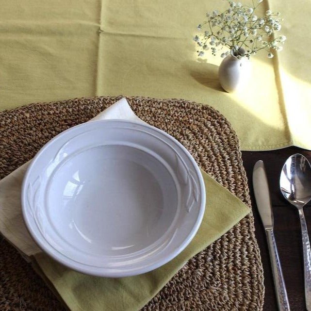 Reversible table runner for the dining table or coffee table for instant splash of color and pattern to your tablescape. Available in black, indigo, gold pink, and yellow.